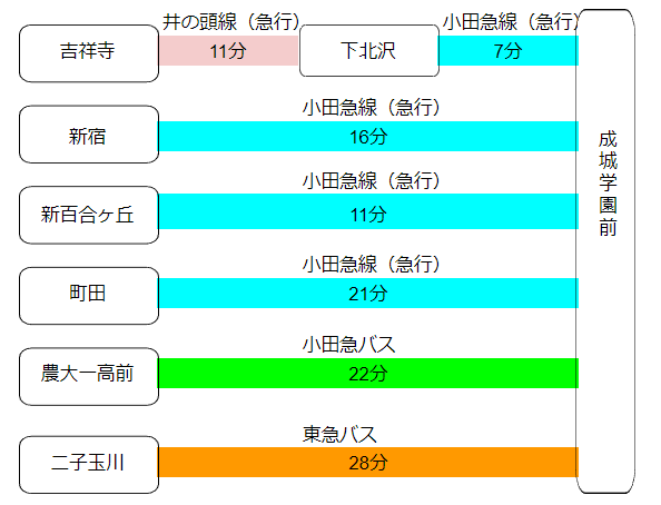 小田急小田原線 成城学園前駅から徒歩1分ですので成城学園前駅ご利用の方はもちろん、以下の学校の生徒さんにお勧めです。
